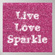 Pink Glitter Live Love Sparkle Poster Print--super chic poster with faux pink glitter background design (digital art) and the inspiring quote, 'live love sparkle'--great poster for the teen's room or gift for encouraging someone to be themselves and shine.