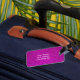 Pink glitter luggage tag with faux shiny glimmers. Personalizable name for glamourous girly girls. Sparkly design with fake glimmering sparkles.