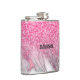 The flask itself is fine. It’s a cheap flask, obviously bought in bulk, however am prepared to overlook that. Given that it is a personalized item, I would have liked to have seen gift boxing instead of the generic packaging. Terrible printing, and/or quality. It’s a cheap, tacky vinyl. It is not cut straight and is also applied in a way that it is overhanging the bottom, causing the glue to catch on items and it will eventually roll and tear, damaging the wrap.