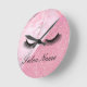Pink, Glitter, Marble, Stylist, Salon Round Clock