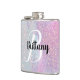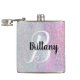 The flask itself is fine. It’s a cheap flask, obviously bought in bulk, however am prepared to overlook that. Given that it is a personalized item, I would have liked to have seen gift boxing instead of the generic packaging. Terrible printing, and/or quality. It’s a cheap, tacky vinyl. It is not cut straight and is also applied in a way that it is overhanging the bottom, causing the glue to catch on items and it will eventually roll and tear, damaging the wrap.