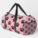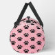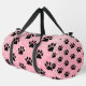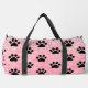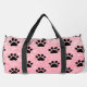 This sparkling Gear bag features a delightful pattern of black paw prints set against a shimmering pink background with small white glitter details. It's a charming Kit bag and a fashionable Weekender for pet owners with flair.