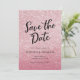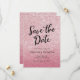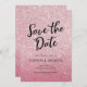 Save the date wedding invitations with rose pink glittery background texture, add a photo of the happy couple on the back and your website address or other details (optional).