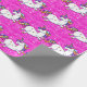 A colourful, sparkly pink unicorn wrapping paper with a pattern of cute little chubby unicorns with rainbow coloured hair, mane and tail, gold stars on their bodies and golden hooves. They're dancing over a glittering pink background of sparkling glitter. This pink unicorn wrap would be ideal for a children's birthday party gift, for unicorn crafts, and more.