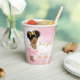 Princess baby shower paper cups with adorable African American princess baby girl with cute afro puff hair, crown and tutu on a pretty pink and gold glitter background. These princess baby shower paper cups are easily personalised for your event by adding the text of your choice. You can delete the it's a girl graphic.