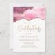 This trendy birthday invitation features a watercolor image of an agate geode in shades of pink, trimmed with faux gold glitter highlights. The words "Birthday Party" appear in faux gold glitter in decorative modern handwriting font. Customise it with the name of the honoree in gold art deco font and the party details in gold sans serif type on a white background. The same pink agate image appears on the reverse side.