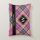 Pink, golden yellow and blue tartan design. Seamless pattern. Custom text and monogram.