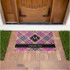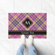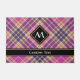 Pink, golden yellow and blue tartan design. Seamless pattern. Custom text and monogram.