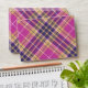 Pink, golden yellow and blue tartan design. Seamless pattern.