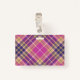 Pink, golden yellow and blue tartan design. Seamless pattern. Custom text and monogram.