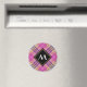 Pink, golden yellow and blue tartan design. Seamless pattern. Custom monogram.