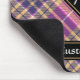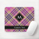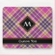 Pink, golden yellow and blue tartan design. Seamless pattern. Custom text and monogram.