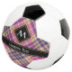 Pink, golden yellow and blue tartan design. Seamless pattern. Custom text and monogram.