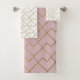 Pink Gold And White Geometric Pattern Bath Towel Set