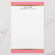 Pink and white stationery with gold trim. Personalise with your name, or business name and address. Text, font, font size, colour and placement are completely customisable, so make it your own.