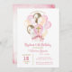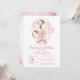 Pink Gold Balloon Girl Baptism Birthday Bow tie Invitation
