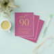 Celebrate your special day with a lavish, yet budget-friendly, 90th birthday invitation. This eye-catching invitation features a beautiful pink background with gold script, providing an elegant accent that will surely impress your guests. With our unique and affordable design, create an unforgettable celebration and invite your family and friends to join you in the festivities. LOW BUDGET INVITATION FLYERS. *** PLEASE NOTE this budget option is a flyer (no envelopes included) hence the low price - The SATIN option is the thicker choice. The design has an additional text template on the rear (yes, added value!) for extra details such as RSVP, directions etc.
