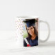 Customisable photo template class of 2024 graduation mug with gold and pink confetti pattern.