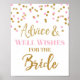 Advice and well wishes for the bride sign for bridal shower in light pink and gold confetti pattern. Please note glitter effect is photographic effect only.