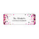 Fun colourful confetti personalised address labels: a cute idea for mailing baby and kids' birthday party invitations! Featuring your address with fun pink, black and glitter gold confetti circles sprinkled at the edges of the return address label. (Please note, glitter gold parts of this design will be printed to look metallic, but will not contain any actual gold foil, glitter or ink.)