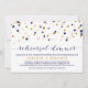 Modern invitation featuring blush, gold and navy confetti dots. This is a part of a wedding suite - matching items and other colours are available.