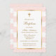 Pink Gold Cross Stars Striped Girl Baptism Invitation
