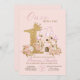 Pink Gold Crown Castle Princess 1st Birthday Invitation