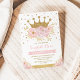 Pink Gold Crown Princess Girly Floral Birthday Invitation