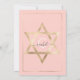 This elegant and unique Bat Mitzvah invitation is perfect for a stylish and trendy event. It features a faux printed gold foil geometric diamond frame with gold sprinkled sparkly confetti on top of a blush pink background with stars of David. It's a chic, modern, pretty, and glamourous luxury design; the perfect complement to your perfect day.