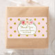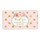 Baby shower thank you favour labels in light blush pink and gold polka dots pattern with pretty pink watercolor flowers and gold details.