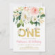 Pink Gold Floral First Birthday Invitation