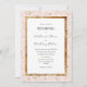 Beautiful modern elegant faux gold floral all season wedding invitation. Pastel pink background with black typography and names in fancy script. A pretty sophisticated invitation for any season of the year.