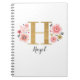 A beautiful, feminine monogrammed pink floral notebook, featuring pink flowers and a faux gold monogram letter H. Personalise the notebook by adding your name underneath the monogram. Makes a fun gift for a friend or for a bridesmaid gift. Designed for you by Blackberry Boulevard.