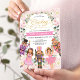 Whimsical nutcracker-themed birthday invitation in feminine pink and gold.