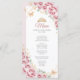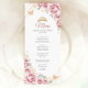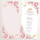 Pink, gold and white Quinceanera celebration slim menu card. Features, script font, gold butterflies, watercolor roses and tiara. Perfect for an elegant princess style glam celebration. Personalise with your own details.