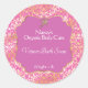 A product label featuring a pink damask pattern in the background. Has space for your logo.