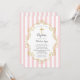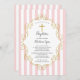 Pretty Baptism invitation featuring a pink & white stripe background with a gold cross & frame for a girls christening
