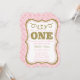 Celebrate your little girls first birthday in a fun way with this pink and gold glitter quatrefoil 1st birthday scalloped edge invitation.