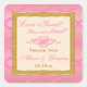 Perfect for your romantic Victorian spring or summer vintage wedding, this "Love is Sweet! Please take a treat!" 1.5" square pink, ivory, and gold damask candy buffet wedding favour thank you sticker with faux gold glitter (PRINTED) border and an ornate pink scroll on it that matches the wedding invitation shown below. There are other shapes and sizes you can choose. ****PLEASE be careful if you do change the sticker shape, as parts of the design and/or text may get cut-off as the safe boundary for text is quite large. If you change fonts, they also may extend into the safe boundary, so its best to contact me to make another shape for you. If you need assistance, email niteowlstudio@gmail.com.