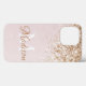Elegant and practical iPhone one case printed with a soft pink and gold glitter design and adorned with your name and initial.