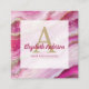 Pink Gold Glitter Marble Agate Chic Monogram Square Business Card