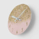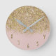 Pink & Gold Glitter Modern Trendy Glam Chic Round Clock