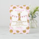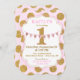 Bold pale pink and gold glitter-look dot print with birthday banner sign over a gold numeric one lettering modern birthday invitation card design.