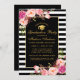 Watercolor Pink Blush Gold Floral Graduation Party Invitation Card with Black and White Stripes - Photo Back