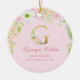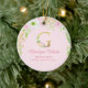 Pink & Gold Letter "G" Floral Monogram Birth Stats Ceramic Ornament