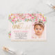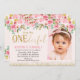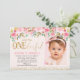 Sweet little miss onederful first birthday invitation with a mostly pink floral arrangement and a faux gold foil heading. The background is a pale pink background. Same design with a white back ground is also available at the store.