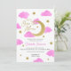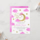Celebrate a little star on the way with this dreamy pink and gold baby shower invitation. Featuring watercolor clouds, glittering stars, and a golden crescent moon, it’s perfect for a celestial or "Over the Moon" themed celebration for a baby girl. Fully customisable with event details.