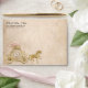 Looking for beautiful stationery ideas to go with your Cinderella princess themed celebration? Create your own DIY fairy tale rustic parchment envelopes by simply adding your personalised return address or other custom text to this unique, easy 5x7 invitation envelope template. The original art by Raphaela Wilson on these elegant script return address envelopes depicts a vintage horse and carriage almost midnight clock atop an aged old scroll parchment paper with light pink watercolor roses for the inside liner. Faux metallic gold confetti and small butterflies add to the sparkle. This gorgeous whimsical theme is ideal for Cinderella weddings, a princess themed quinceanera, blush bridal shower, once upon a time baby shower, and other magical moments. The back envelope flap is embellished with additional roses with foliage leaves and faux metallic gold accents and confetti. Feel free to change the calligraphy script and modern fonts to any typography that best suits your fancy. If you'd prefer to use a round envelope seal or sticker instead of pre addressed printing, simply delete the address entirely. Category: butterfly princess wedding envelopes; cute horse drawn carriage wedding return address envelopes; and blush floral 5x7 envelopes (rsvp card size available). Light pink quince theme colours: soft pastel blush, light rose gold pink, yellow champagne gold, light brown, tan, and black.