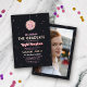 Celebrate the graduate with a disco-themed graduation party and invite your guests with this disco ball-themed graduation party invitation with tiny stars and flares and a disco ball in pink and purple and gold foil with the graduate's name in a pink retro script. Fun and retro graduation party invitation with a girly disco ball and retro fonts with pink and gold foil as the accent colour. Add a photo of the graduate to the back!