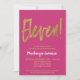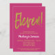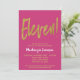An elegant, simple but striking hot pink and gold 11th birthday party invitation. Glam script text at the top and gold text below with the name in stand-out white